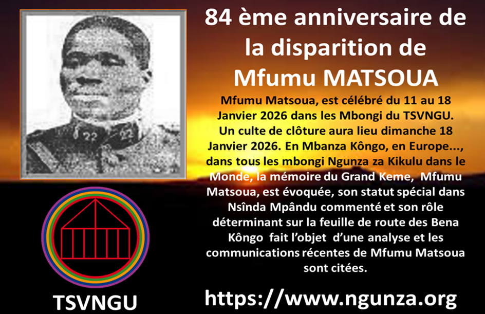 Il inclut le Message 2014 de Mfumu Kikulu, Tâta Mfumu Mpu aux Bena Kongo. »